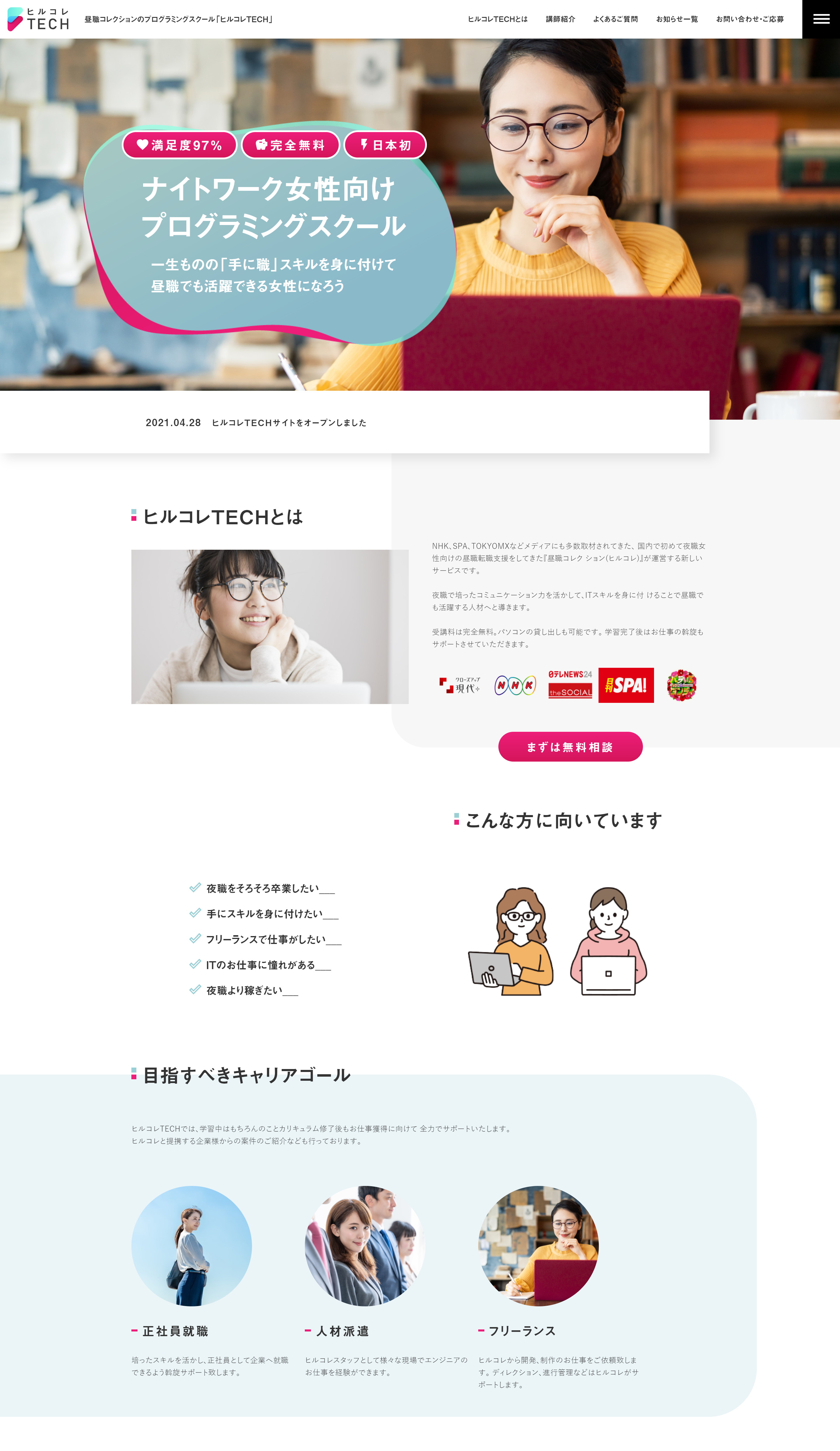 NHK、SPA、TOKYOMXなどメディアにも多数取材されてきた、 国内で初めて夜職女性向けの昼職転職支援をしてきた『昼職コレクション(ヒルコレ)』が運営する新しいサービスです。