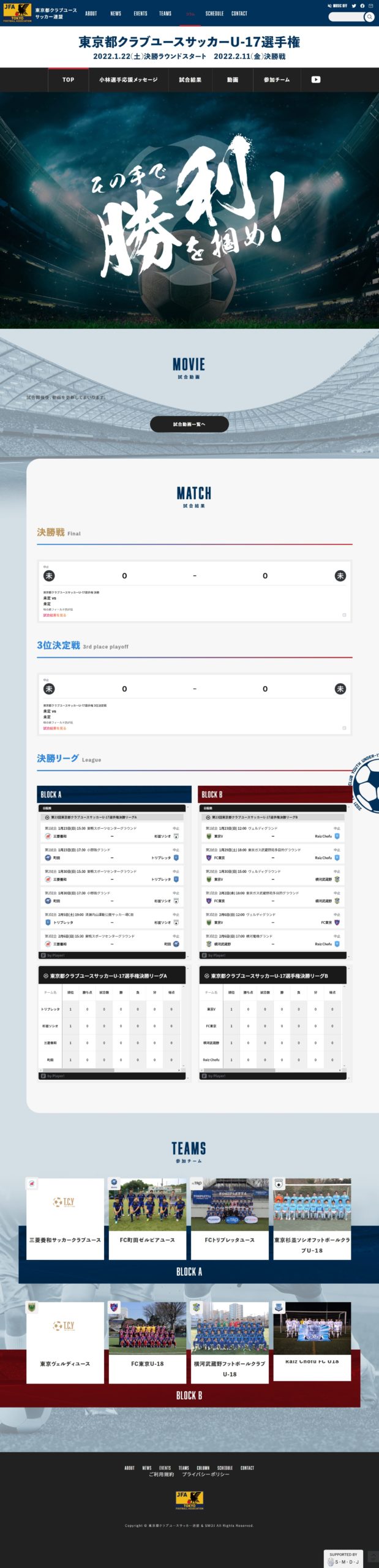 東京都クラブユース連盟様が主催する東京都クラブユースu17選手権の特設ページを制作しました。